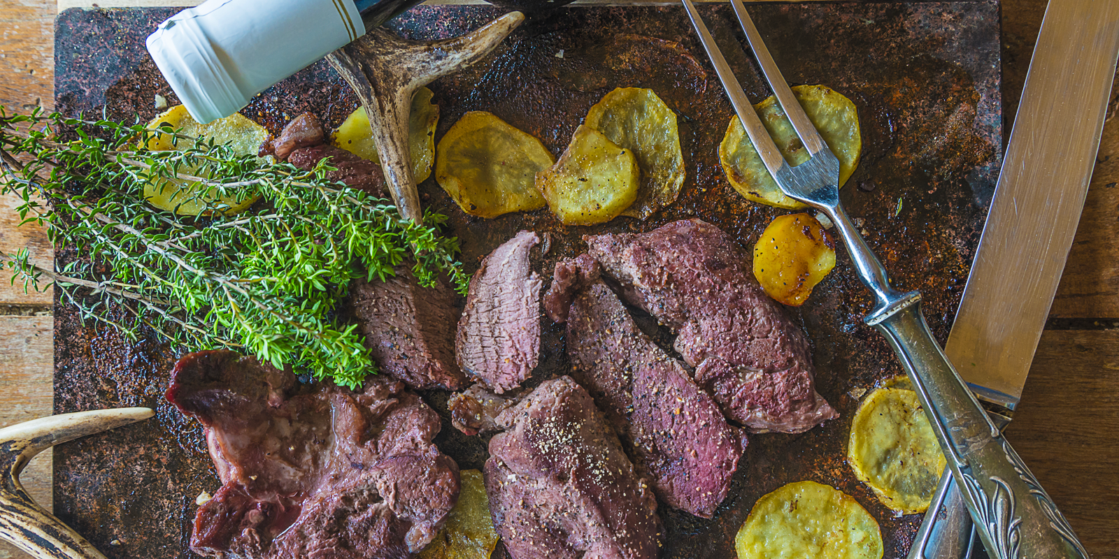 Wild und Rotwein, ein perfektes Ensemble. Das fand auch unser Küchenchef und hat ein geniales Menü zusammengestellt, unser Restaurantleiter Dirk Brauer suchte dazu die passenden Rotweine aus – ein Gaumenschmaus in den historischen Räumen des Weinguts, das alle Sinne weckte.