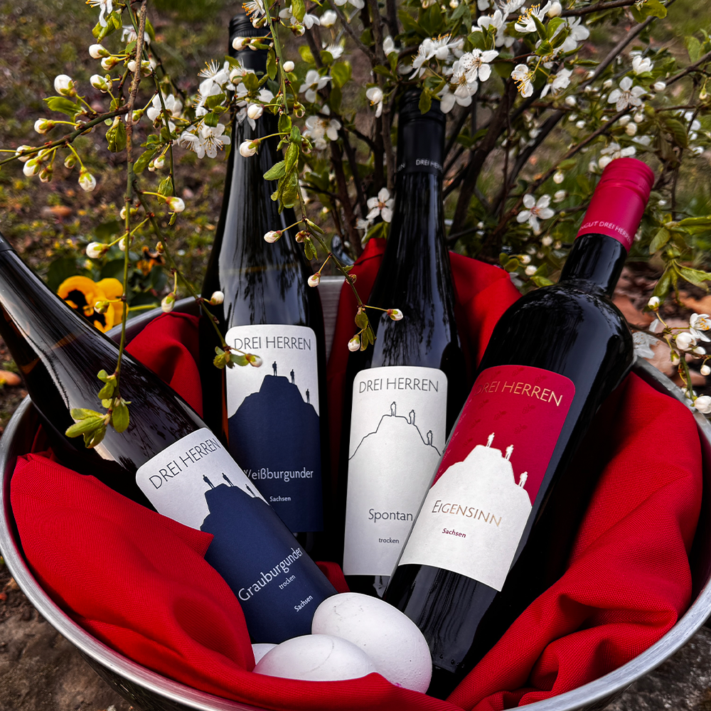 OSTERSONNTAG z. B.: Eigensinn Cabernet franc, Deutscher Qualitätswein Sachsen trocken, Erzeugerabfüllung (13,5 % vol | 1,5 g/l Restzucker | 4,6 g/l Säure)
